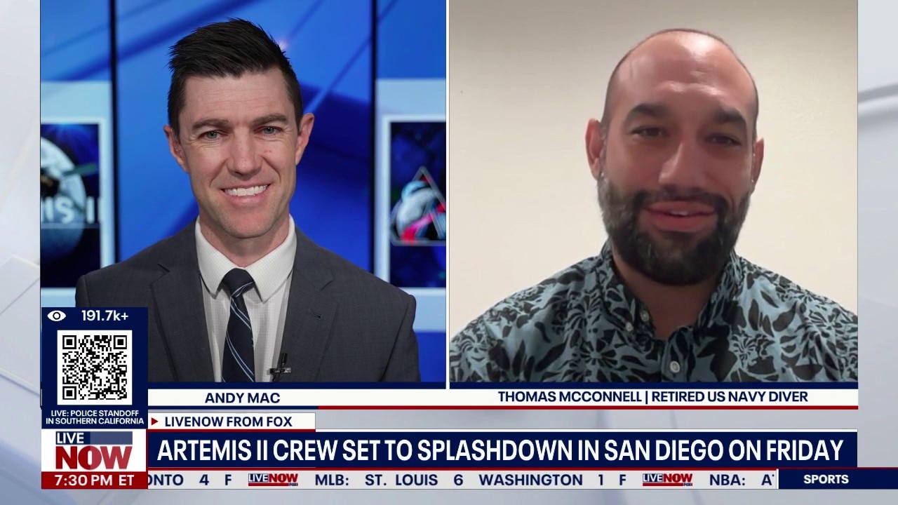 We are watching as the Artemis II crew spend the eighth day of their mission conducting tests as the Orion spacecraft makes its way back to Earth. The crew is expected to splash down in the Pacific Ocean, off the coast of San Diego, on Friday, April 10. LiveNOW’s Andy Mac is speaking with former U.S. Navy diver Thomas McConnell to learn more before the Artemis II crew parachutes into the Pacific Ocean.