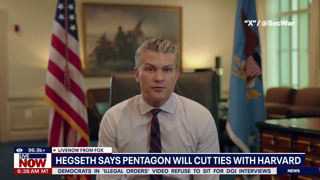 Secretary Hegseth shared a video on the social platform "X" stating that the Pentagon would be cutting ties with "woke" Harvard University.