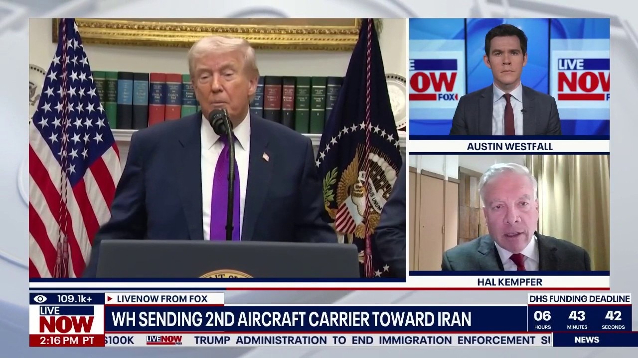 National security analyst Hal Kempfer joins LiveNOW's Austin Westfall to discuss President Trump's comments on Iran and the U.S. sending a second military aircraft carrier toward the Middle East.