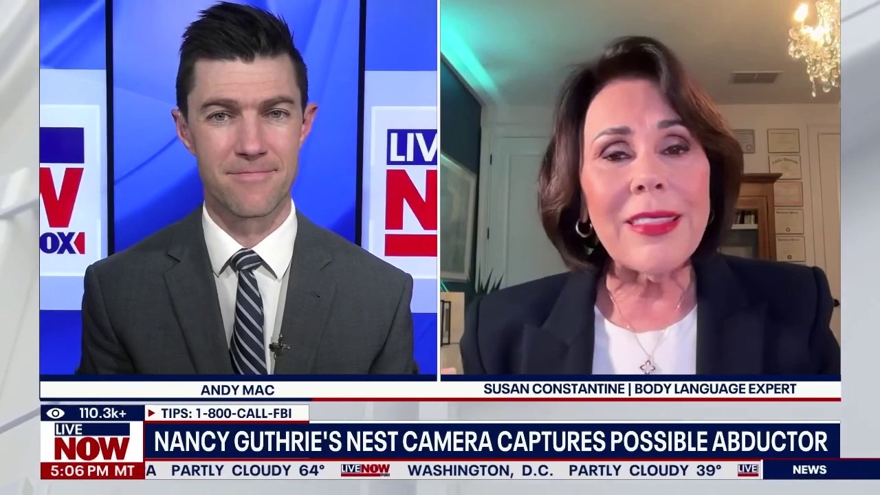 Body language expert Susan Constantine joins LiveNOW's Andy Mac to break down new doorbell camera footage showing a masked person approaching Nancy Guthrie's home on the night she went missing in Arizona.
