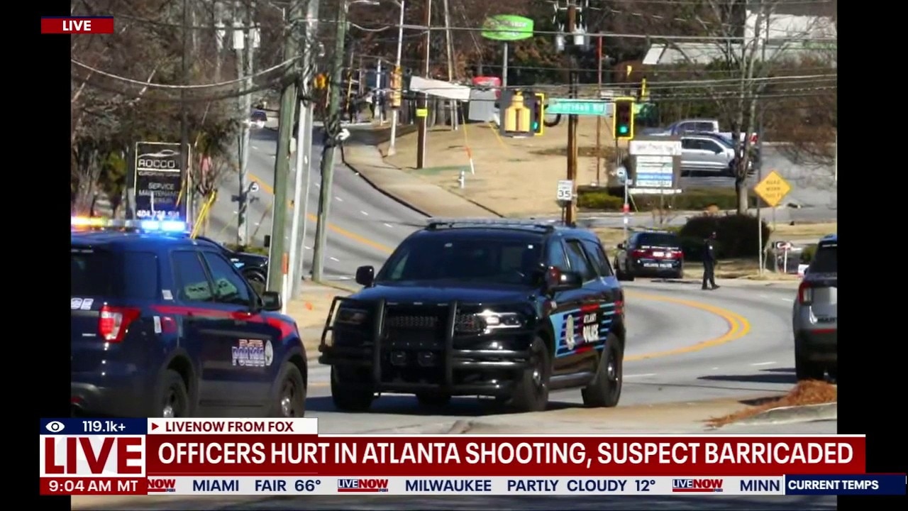 Two Atlanta officers were ambushed while responding to a "shots fired" call at an apartment complex Saturday morning. The suspect is currently in a barricaded standoff with SWAT after an exchange of gunfire with arriving officers.