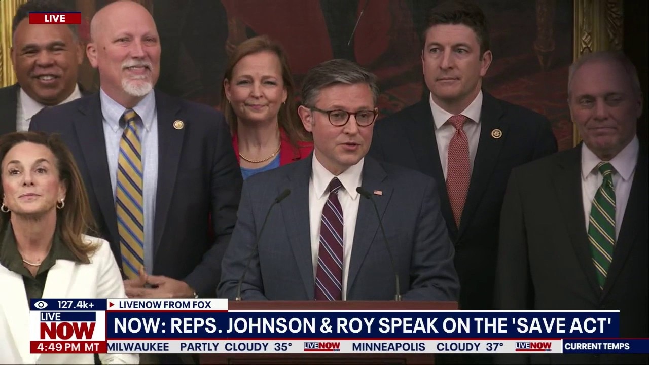 U.S. House of Representatives Speaker Mike Johnson is currently providing more details on the successful passage of the SAVE America Act. The bill aims to prevent noncitizens from voting in elections. House Majority Leader Steve Scalise, Whip Tom Emmer, Conference Chairwoman Lisa McClain, Committee on House Administration Chairman Bryan Steil, and Rep. Chip Roy also joined Speaker Johnson in support of the legislation. The legislation will now have to pass the Senate, where current rules dictate that at least a few Democrats are needed to meet the 60-vote threshold to overcome a filibuster.