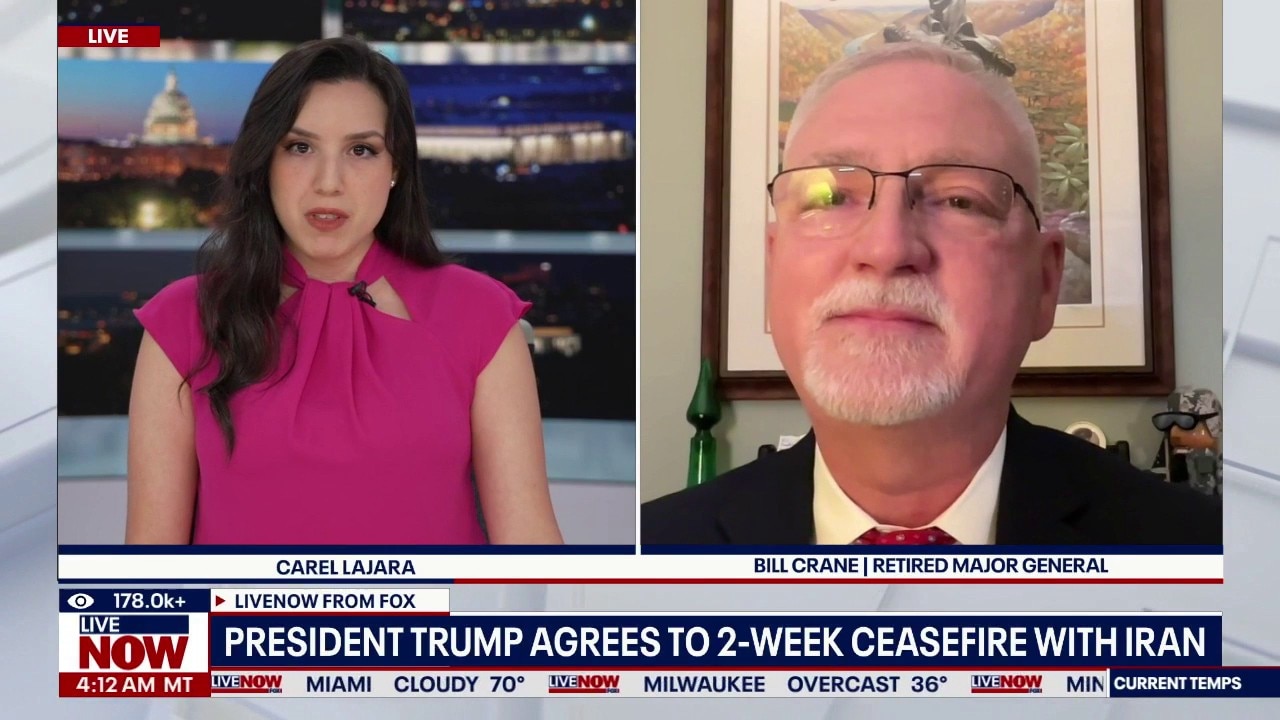 President Donald Trump announced Tuesday night, a ceasefire had been reached between the US and Iran. Bill Crane, a retired Major General joined LiveNOW's Carel Lajara to discuss what happens next.