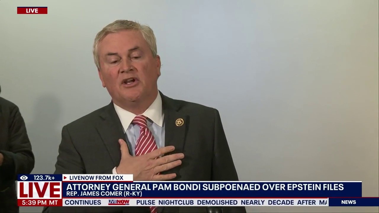 House Oversight Committee Chair James Comer (R-KY) spoke to members of the media after a briefing by Attorney General Pam Bondi and Deputy Attorney General Todd Blanche on the Epstein files.