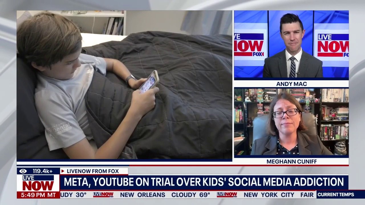 The landmark trial accusing social media companies, Meta and YouTube, of addicting children to their platforms has begun in Los Angeles. LiveNOW's Andy Mac spoke about the trial with legal affairs journalist Meghann Cuniff.