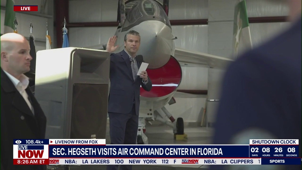 Secretary Pete Hegseth participates in an Oath of Enlistment Ceremony at Valiant Air Command in Florida.