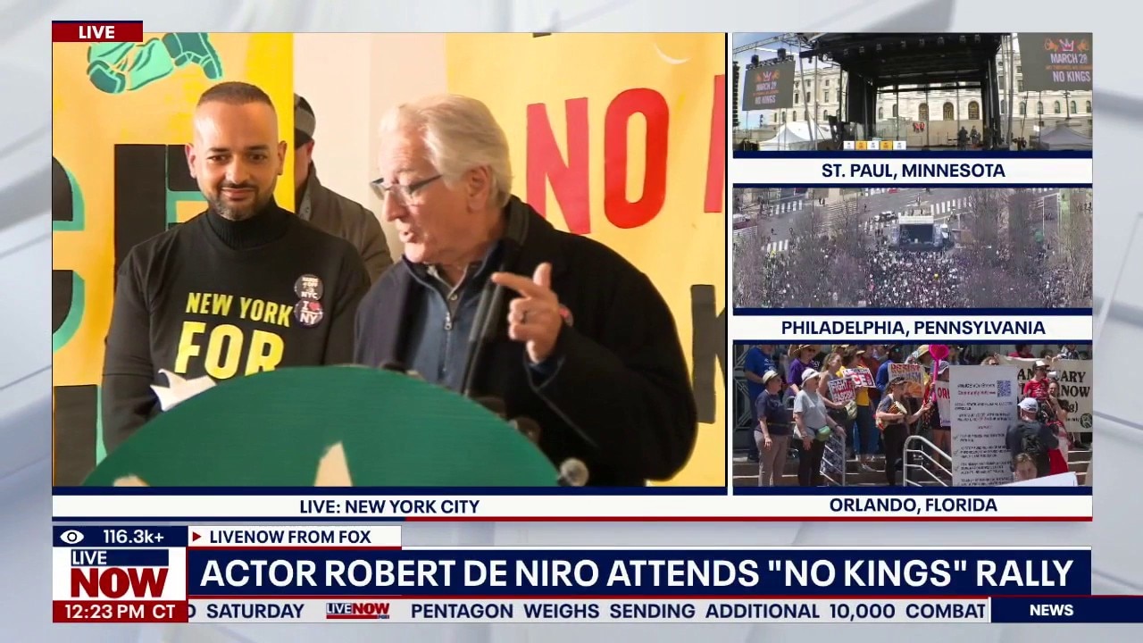 Award-winning actor Robert De Niro was among the speakers at the "No Kings" rally in New York City, one of an estimated 3,300 rallies planned nationwide on Saturday.