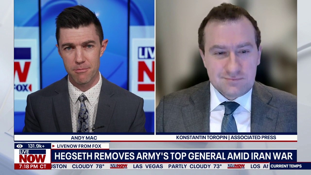 We are now learning that Defense Secretary Pete Hegseth has reportedly asked the Army’s top uniformed officer to step down. The Pentagon made the announcement on Thursday without giving an initial reason for the departure. Gen. Randy George “will be retiring from his position as the 41st Chief of Staff of the Army effective immediately,” said Sean Parnell, the Pentagon’s top spokesman. LiveNOW’s Andy Mac is speaking with Konstantin Toropin from the Associated Press as the move comes as the United States continues to wage war against Iran.