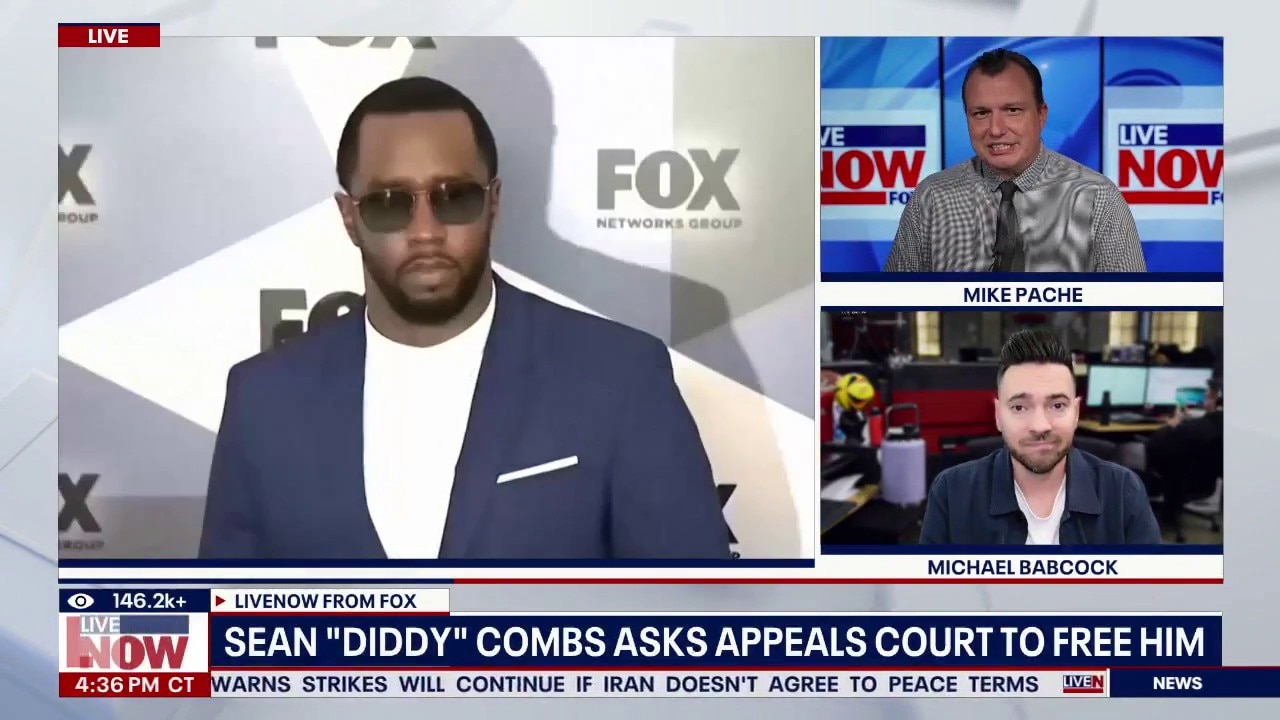 LiveNOW’s Mike Pache is speaking with TMZ’s Michael Babcock as lawyers for Sean "Diddy" Combs ask a federal appeals court to overturn the conviction that sent the hip-hop mogul to prison on prostitution-related charges. Combs’ lawyers are arguing he was treated unfairly at trial and that the First Amendment should apply. According to our partners at FOX 5 New York, the 56-year-old has been in custody since his arrest in September 2024. The Federal Bureau of Prisons has said he is scheduled to be released in April 2028.