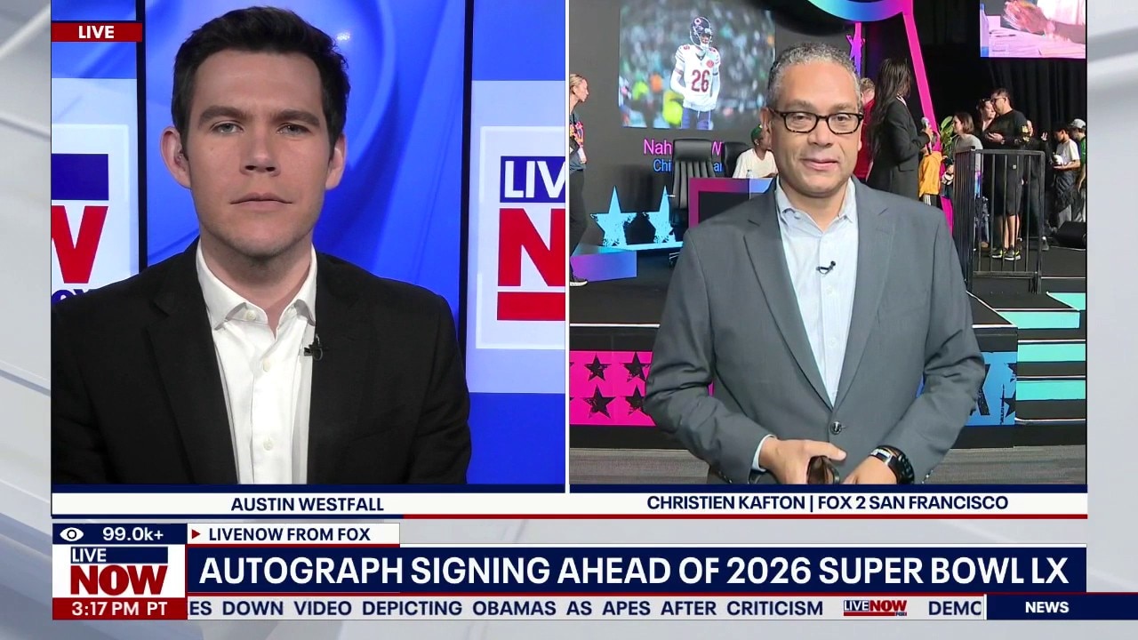 FOX 2 San Francisco's Christien Kafton reports live from a 2026 Super Bowl autograph signing event, joining LiveNOW's Austin Westfall ahead of tomorrow's big game.