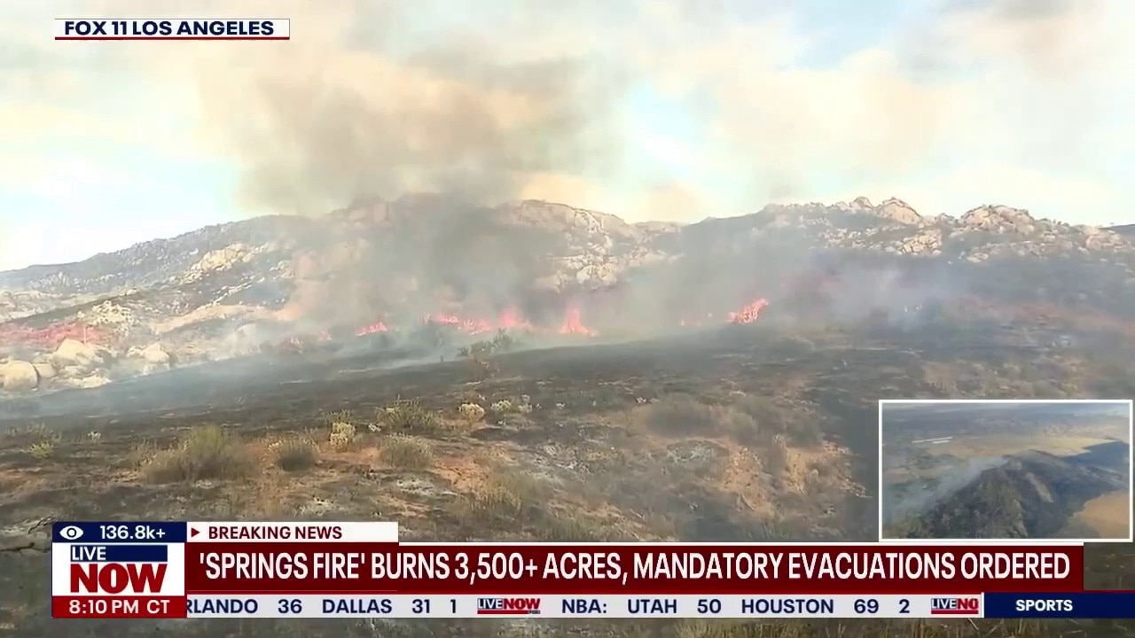 The Springs Fire near Moreno Valley has surged to 3,500+ acres as it threatens thousands of homes in Riverside County. FOX 11 LA is also tracking another fire in Southern California, the Crown Fire. That fire has reached 280 acres, prompting additional evacuation warnings.