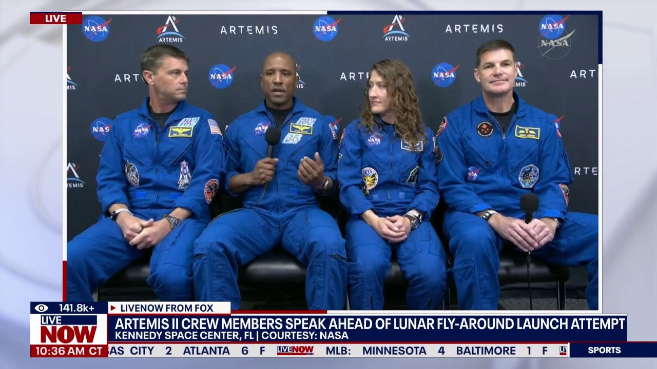 The four NASA astronauts answered questions from reporters ahead of their lunar fly-around launch attempt. The astronauts are currently in quarantine quarters at the Kennedy Space Center in Florida.