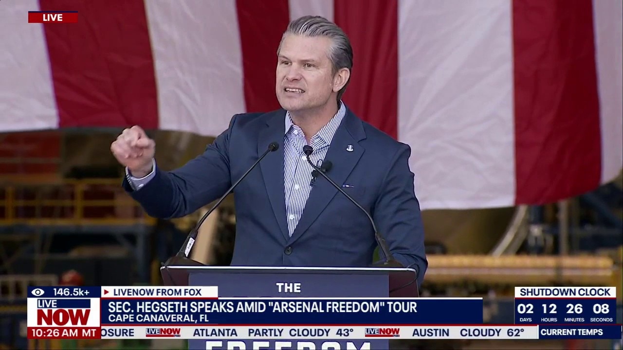 Defense Secretary Hegseth delivered remarks from Cape Canaveral, Florida. Hegseth is on his "Arsenal of Freedom" tour.