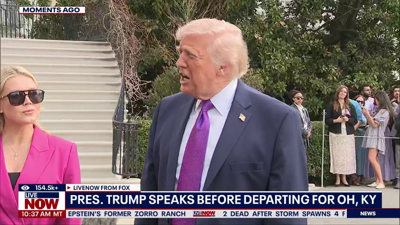 President Trump takes questions from reporters Wednesday before heading to Ohio and Kentucky.