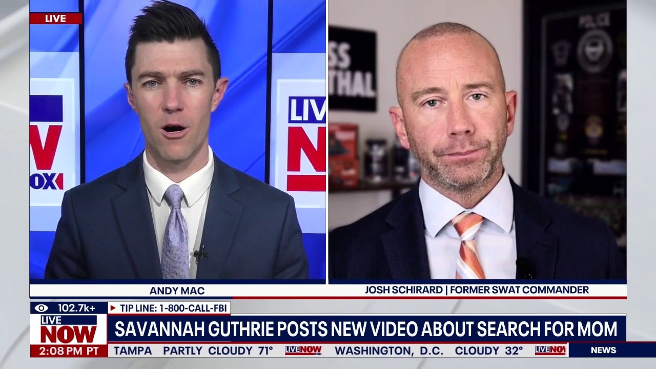 LiveNOW’s Andy Mac is speaking with Josh Schirard, the Director of Byrna Law Enforcement, as Savannah Guthrie says her family is hitting the 'hour of desperation' in the search for her missing mother in a newly released video. Feb. 9 marks the ninth day in the search for Nancy Guthrie. An alleged 5 p.m. Monday deadline was set as the family of the 84-year-old offers to pay a $6 million Bitcoin ransom for her safe return.