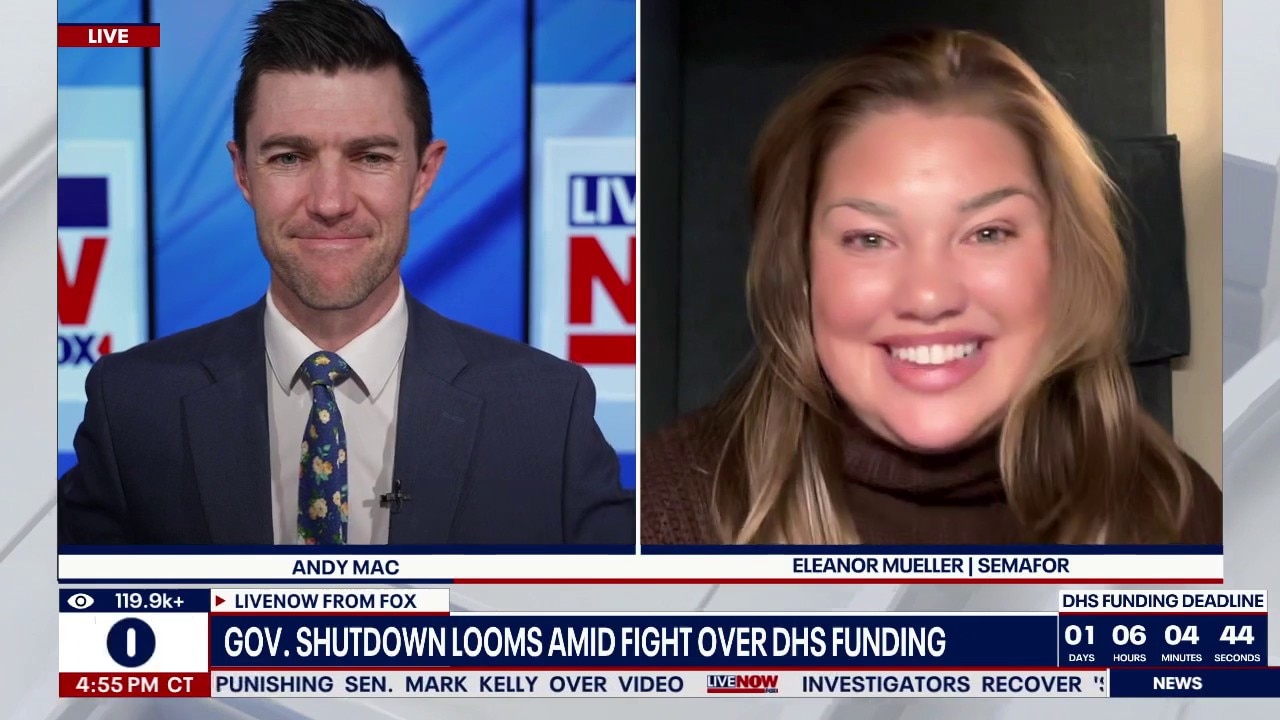 LiveNOW's Andy Mac brings Semafor reporter Eleanor Mueller into the conversation to discuss the latest details on the government shutdown looming amid the fight over DHS funding.