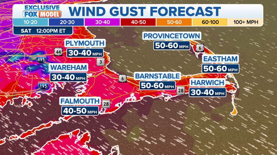 Potential wind gusts in eastern Massachusetts and Cape Cod. (FOX Weather)