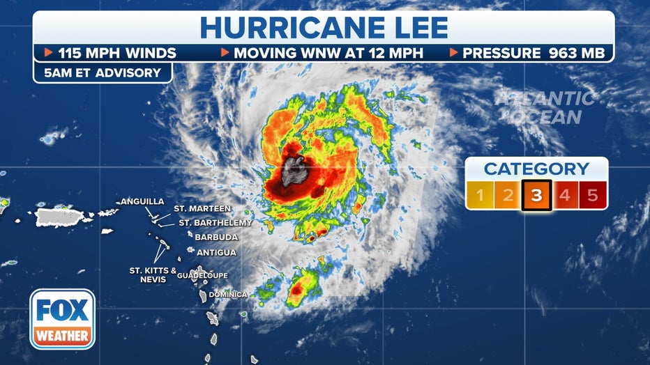 According to the National Hurricane Center, Hurricane Lee is about 385 miles to the east-northeast of the northern Leeward Islands.