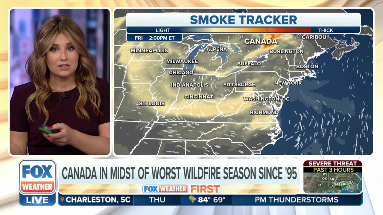 The culprit was spotted Thursday as northerly winds drove wildfire smoke in Canada down into the Upper Midwest. Forecast models suggest it could now swing back into the Great Lakes and Northeast by Friday, according to the FOX Forecast Center.