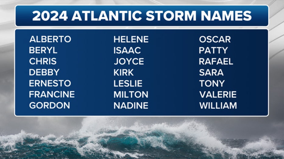Hurricane season 2024 Atlantic Basin tropical cyclone names. (FOX Weather)